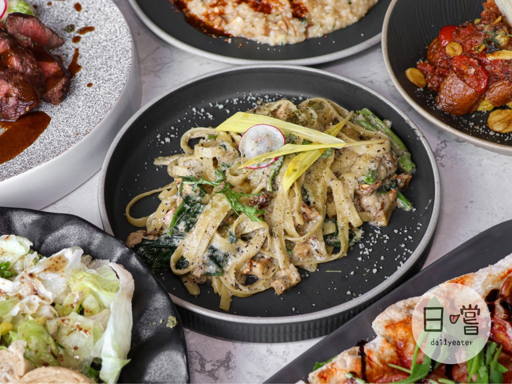 比起餐廳常見的的白醬,這道菠菜松露菌菇細扁麵帶有淡淡的菠菜香,伴隨聞起來濃郁的松露香,令人食指大動。而且不管是排餐、燉飯還是義大利麵,都有很用心的擺盤,能在景觀餐廳能吃到如此水準的料理,真的是超乎自己的預期