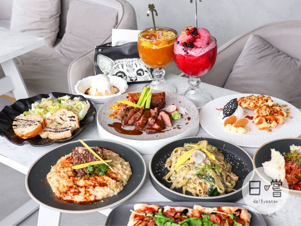 而且除了這些主食,如果是喜歡跟三五好友一起吃些好料,也有炸物、開胃小點跟PIZZA等可以吃👌🏼飯後想吃點甜點,可以選擇的內容也完全不比咖啡廳的還少!重點是他們家的可朗芙鬆餅真的是一定要點😍酥香的口感搭配冰淇淋,冰火五重天的口感也讓人意猶未盡。還有貓禾咖啡的水果系列飲品,不僅繽紛消暑又好大一杯!