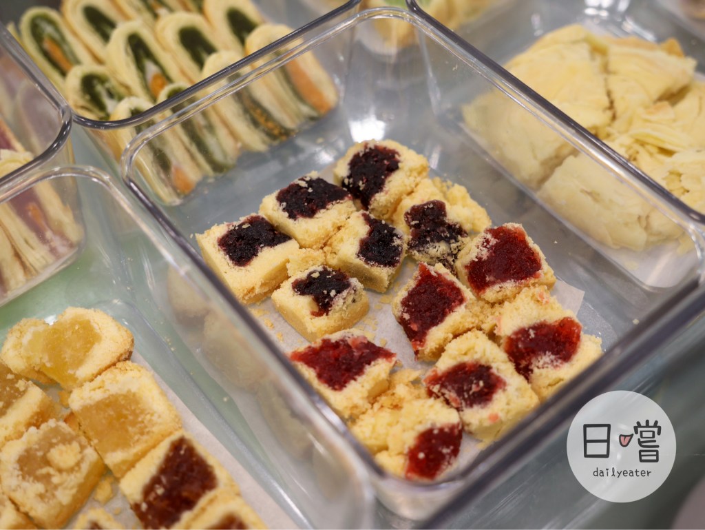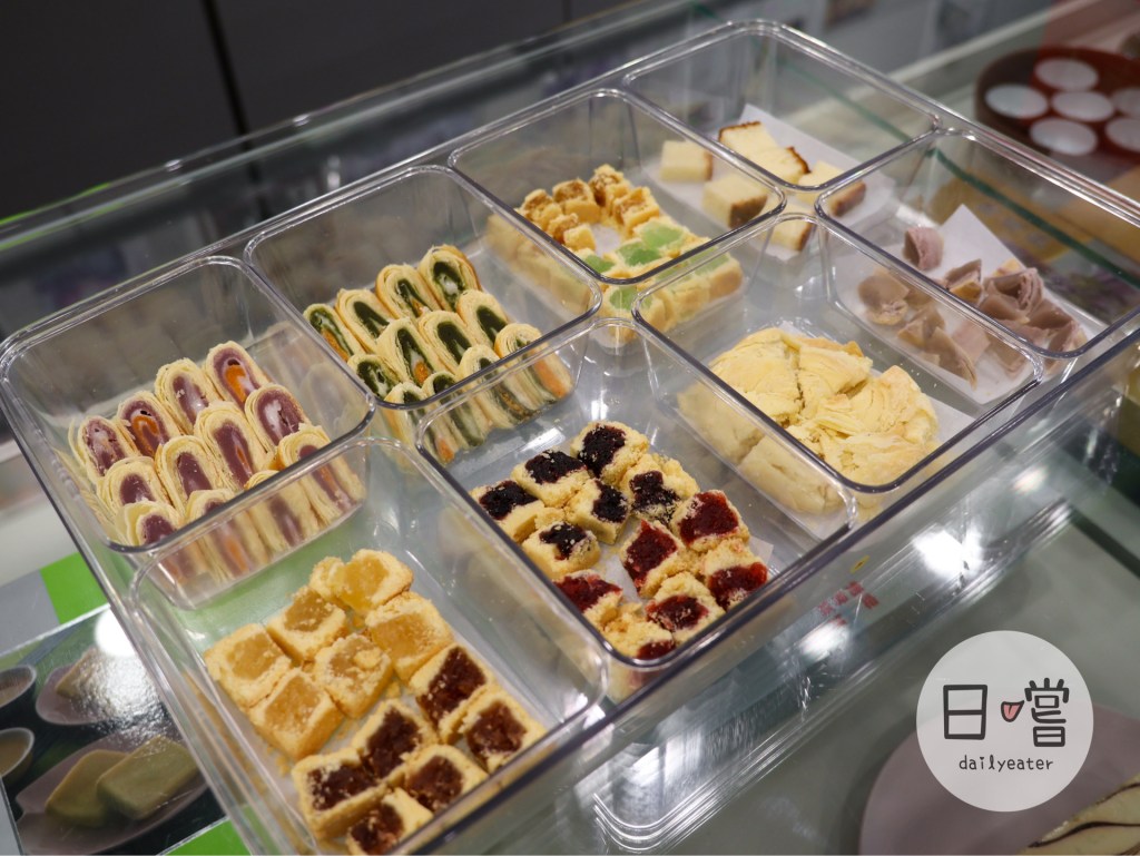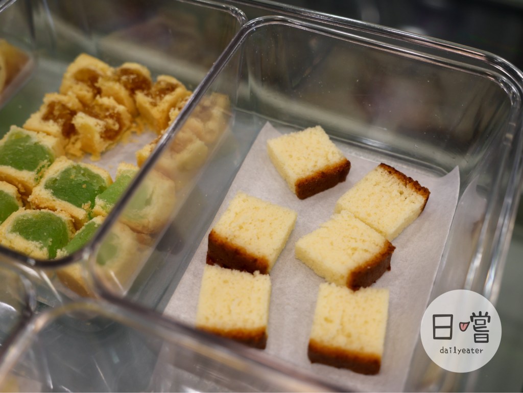 可以試吃的除了有獲獎的總統餅、台灣常見的蜂蜜蛋糕、太陽餅、芋頭酥、鳳梨酥,還有各類的水果酥可以讓你品嚐。如果想吃綠豆糕、芝士條的話也可以跟服務人員說,因為這兩款需要冰起來所以就沒有放在常溫讓大家可以自由拿取喔!