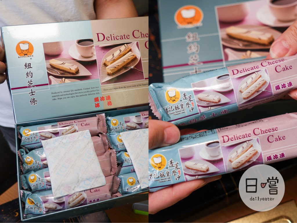 另一款高人氣的商品-紐約芝士條,也是港記酥皇經典不敗的品項之一!這款芝士條需要冷凍保存,在禮盒中店家也已經放了冷凍包進去,從店裡帶回家裡也不用擔心會有融化的問題👌🏼