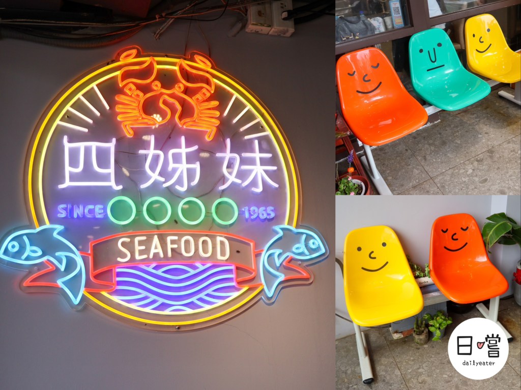 為什麼不去找其他海鮮餐廳而選擇四姊妹?覺得四姊妹吸引我的點就是,他們真的不像是一般那種海鮮餐廳,人擠人就算了整個還很混亂!光是四姊妹的門面就非常吸引人耶😍很有年輕感,坐在這邊拍拍照都覺得很好看!