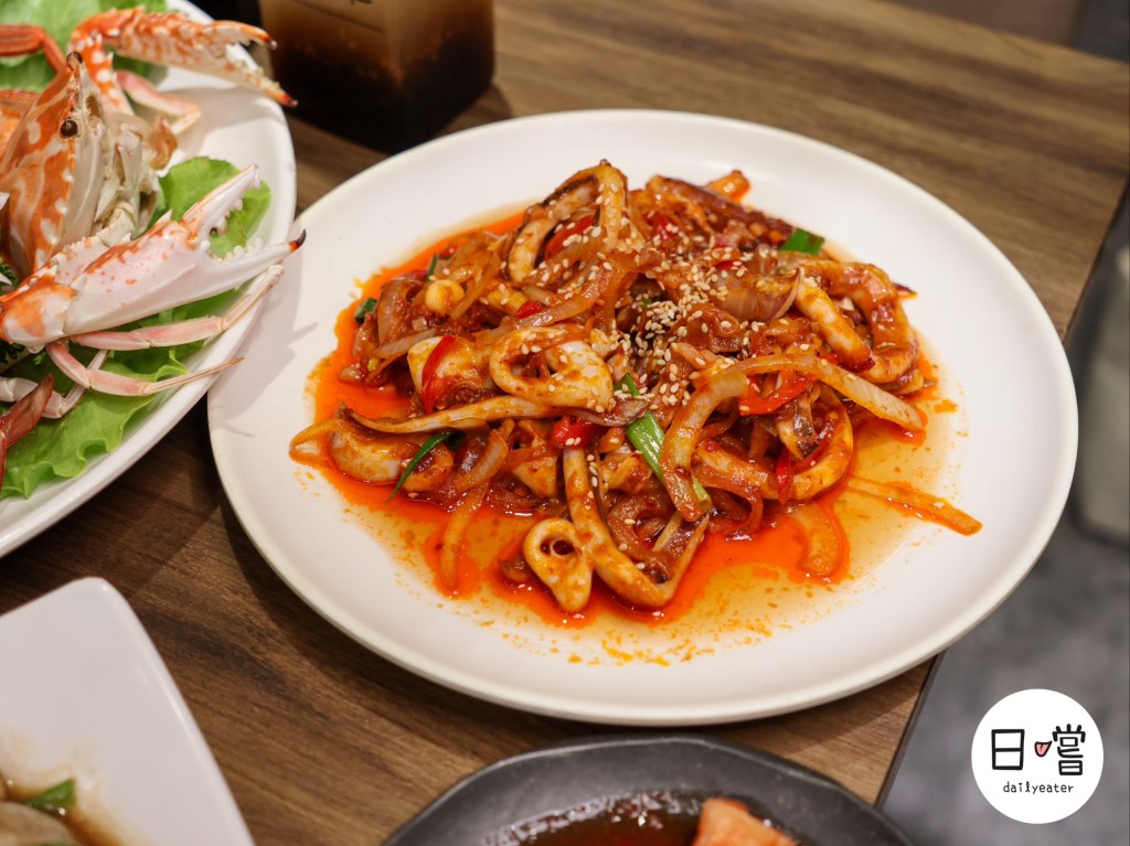 除了螃蟹料理外,也有很多海鮮料理可以選!這道辣炒魷魚就是一道非常下飯的菜🤤
