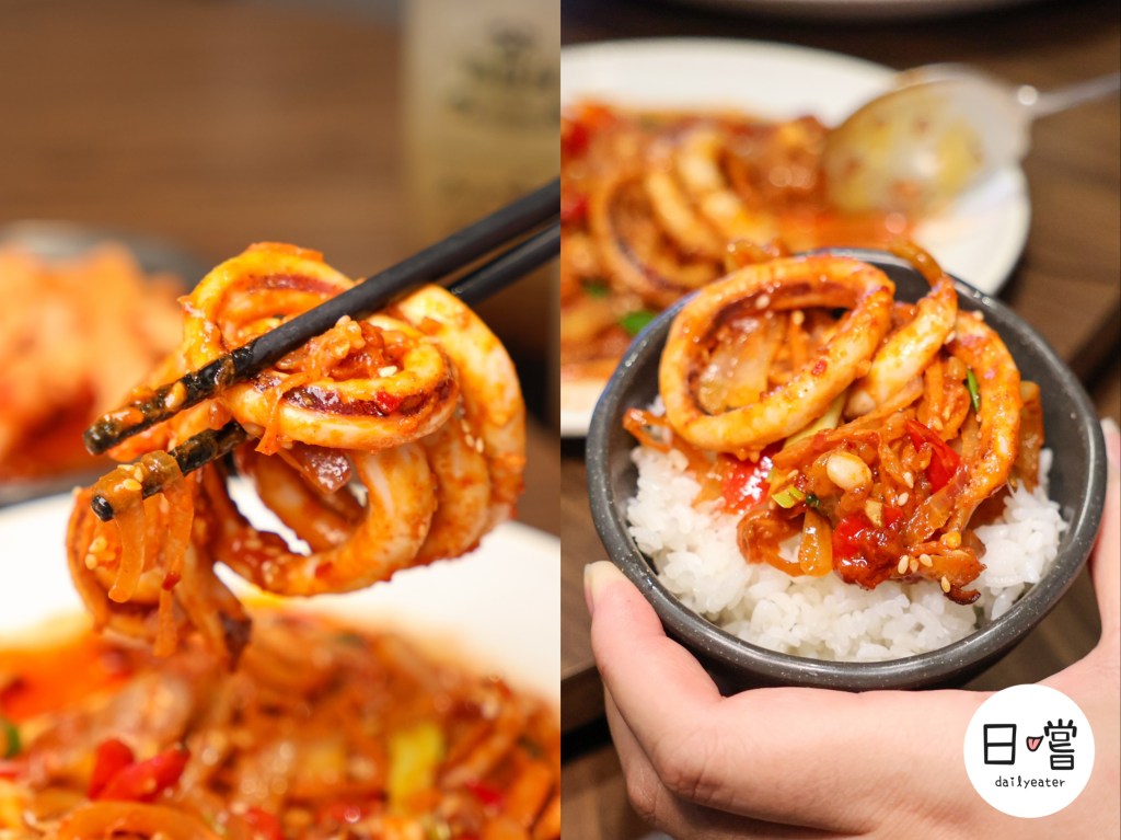 雖然看起來紅通通的,但實際上吃起來不會那麼辣!Q彈的魷魚整個吃起來好涮嘴😋裡面還有一些洋蔥絲,有一點甜辣甜辣的感覺很開胃