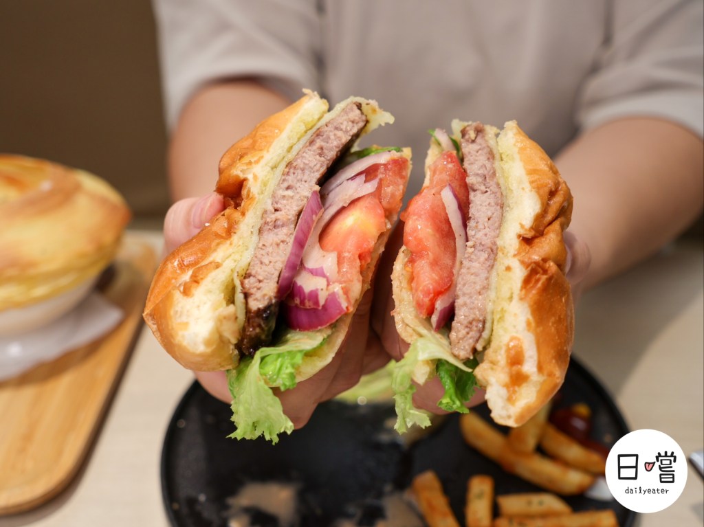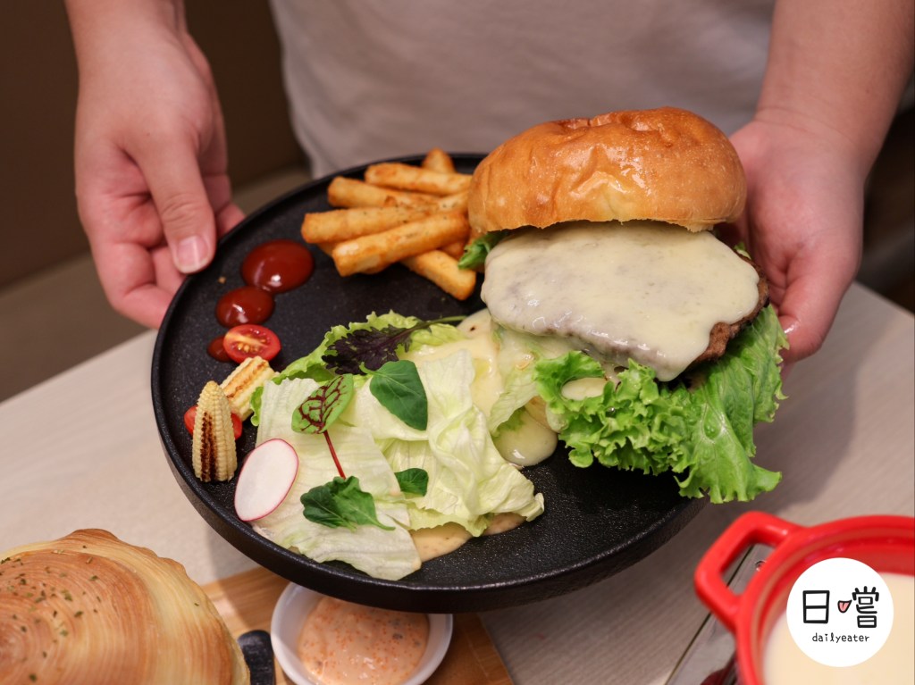 另外就是朋友點的漢堡,使用了日本鹿耳島的和牛肉當作漢堡排!這一聽朋友整個超級有興趣😍又是起司又是和牛,這樣的組合任誰都抗拒不了吧!