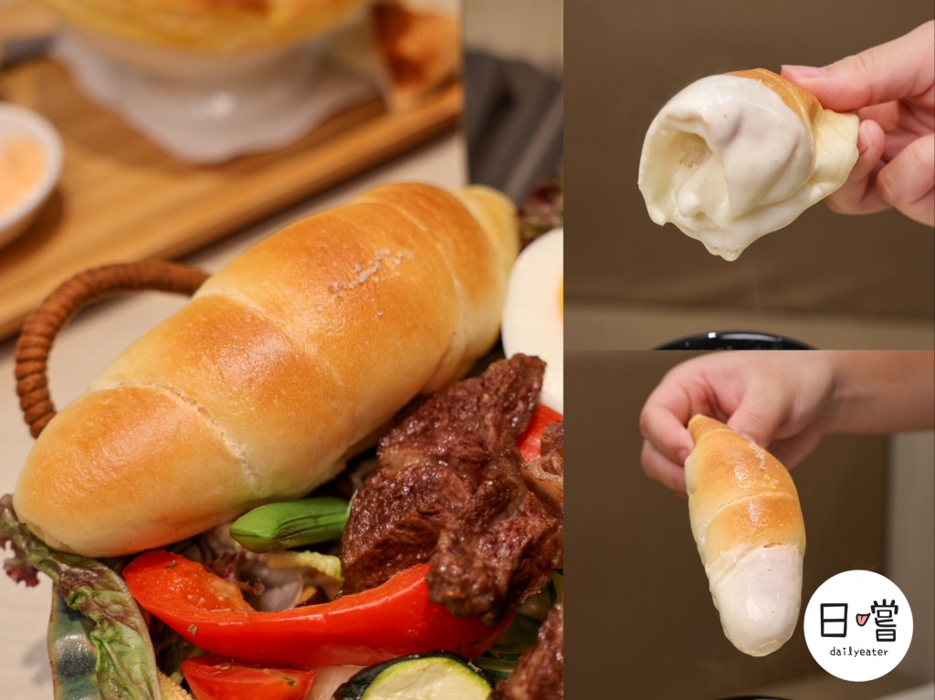 跟前面的早午餐盤一樣使用的也是瑞士瑞克雷起司,原本以為這樣會很膩,結果意外的其實還好,因為裡面還有生菜、番茄等做解膩的作用,一整顆吃下來也是很有飽足感!