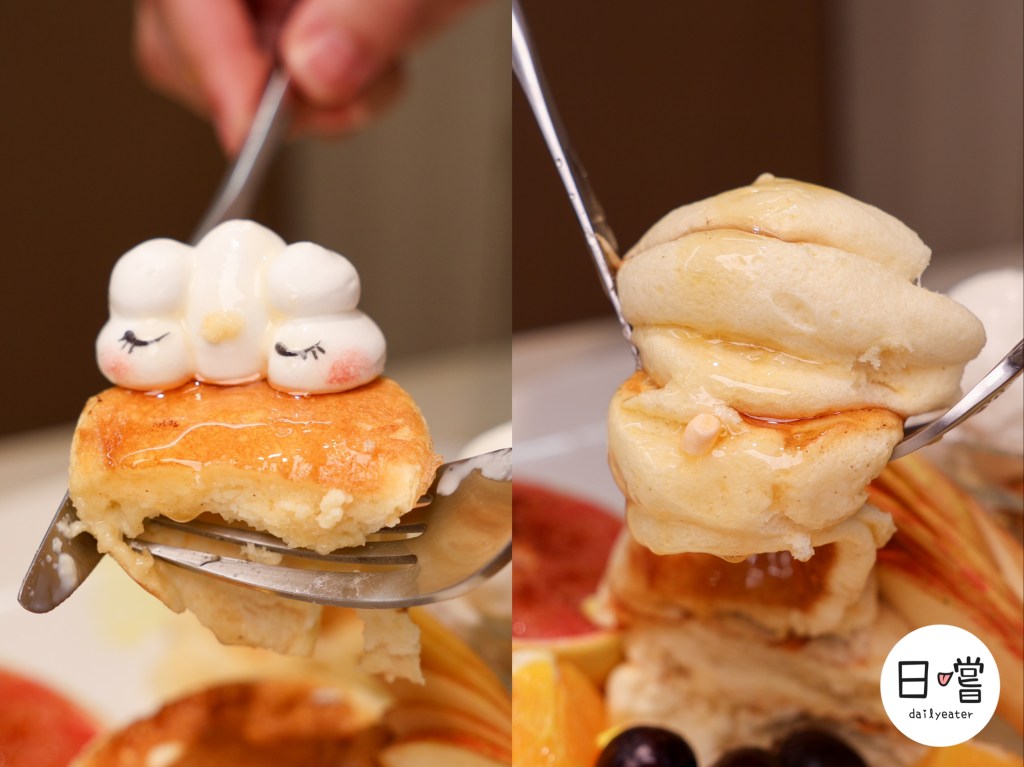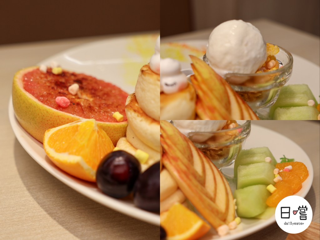 這道舒芙蕾有三層組合而成,搭配各種水果、冰淇淋,顏色繽紛的有夠夢幻😆