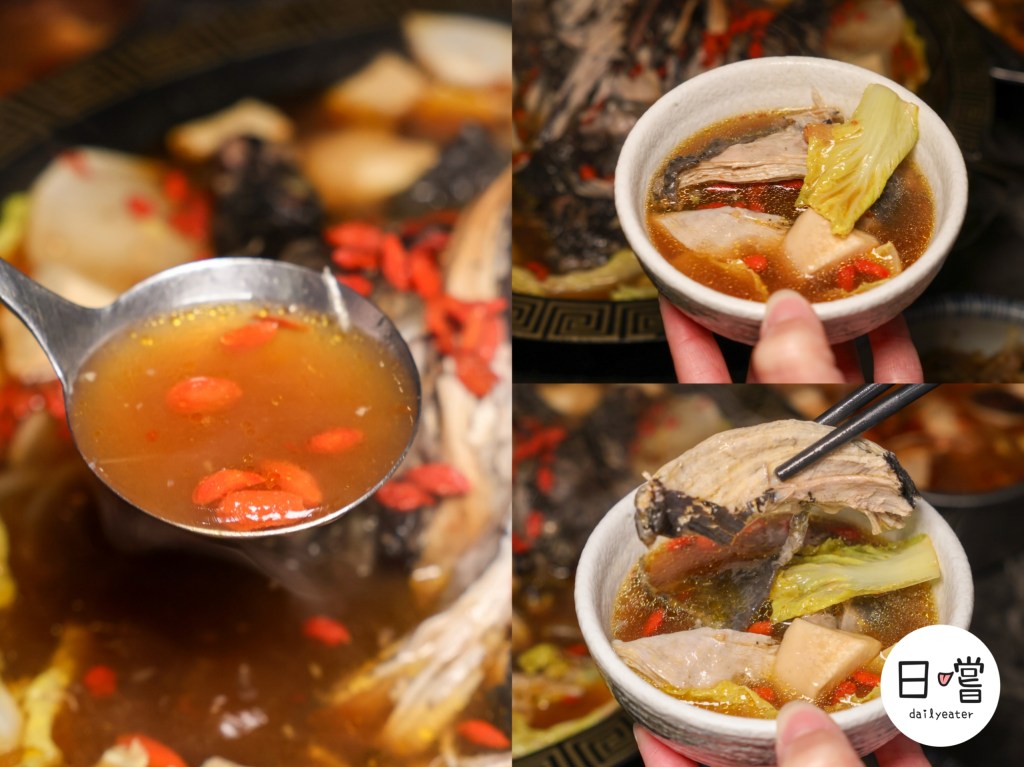 喜歡的是這鍋湯慢慢熬煮後的層次感,入口有中藥的香、雞湯的鮮、蔬菜的甜,冷冷的天氣喝一碗真的超舒暢。