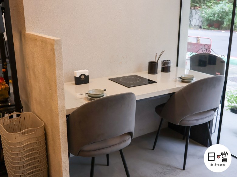 內用座位以米白系皮沙發與大理石桌面為主軸,燈光柔和、空間寬敞,不管是雙人、四人、甚至小型聚會都非常合適。每桌配有獨立電磁爐,讓用餐過程乾淨不擁擠,也貼心設置了靠窗雙人位,一個人來吃也完全不突兀。