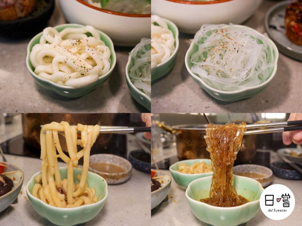 讚岐烏龍麵:Q彈飽嘴,每一口都能吸附湯底精華,越嚼越香,推薦搭配重口味鍋底超加分!寬Q冬粉:比一般粉絲更寬更有嚼勁,吸湯力滿點,入口滑順、煮不爛,吃起來過癮!