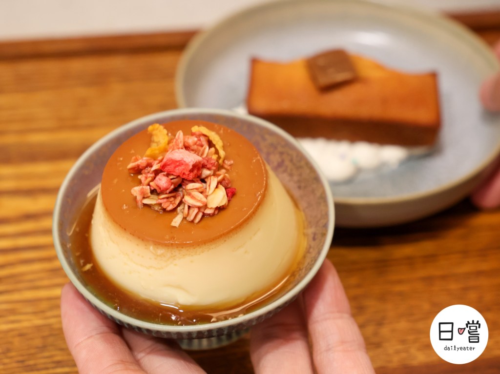 這顆手工焦糖布丁一上桌就讓我眼睛一亮!表面那層焦糖醬色澤飽滿,散發出微微的焦香,還撒上了水果穀片增添口感,視覺與味覺雙重享受。