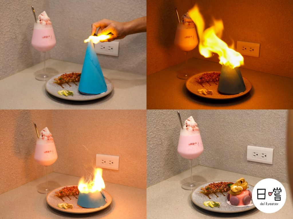 後來店員有提到,如果有當月壽星的話,可以五星好評就會送這一道像魔術般的蛋糕!整個生日餐真的是超級有儀式感的欸,完全是不用因為要送蛋糕而評論,這間火鍋的水準真的是值得五顆星啊!