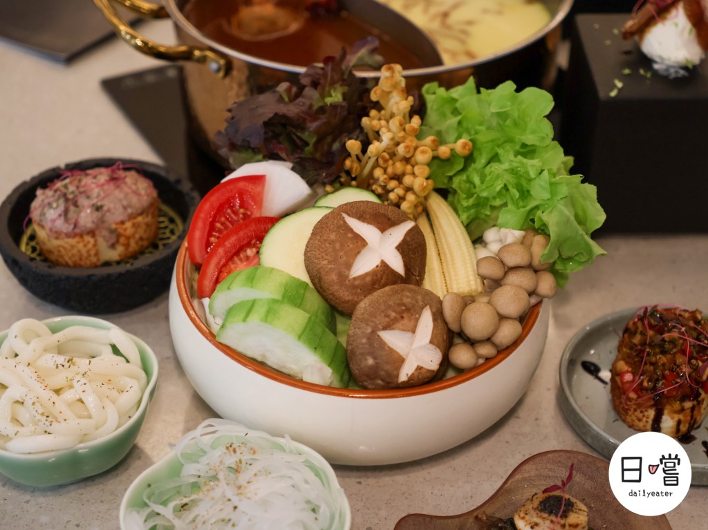番茄、黃金菇、香菇、玉米筍、綠捲生菜、鴻喜菇、小黃瓜等多種蔬菜菇類,口感層次豐富,讓湯頭喝起來更清甜。不論你是肉食派還是養生派,這盤絕對是整鍋的靈魂配角,而且裡面也沒有火鍋料,身為一個愛吃菜的人真的是推推!