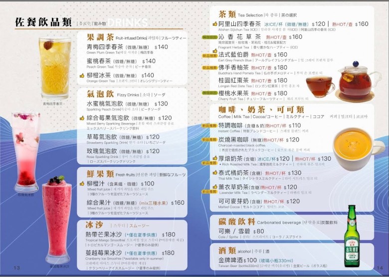 餐後甜點同樣令人驚喜!「琉璃花糕」外層晶瑩剔透,口感柔嫩,帶有淡淡桂花香氣,吃起來清爽不膩;「藍莓起司春捲」則完全不同路線,外皮炸得酥脆,內餡是綿密香滑的起司與微酸藍莓果醬交織,酸甜交錯、層次豐富。兩款甜點一清爽、一濃郁,讓味蕾在不同風格間切換,為整頓餐點畫下完美句點。