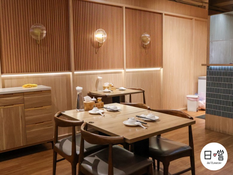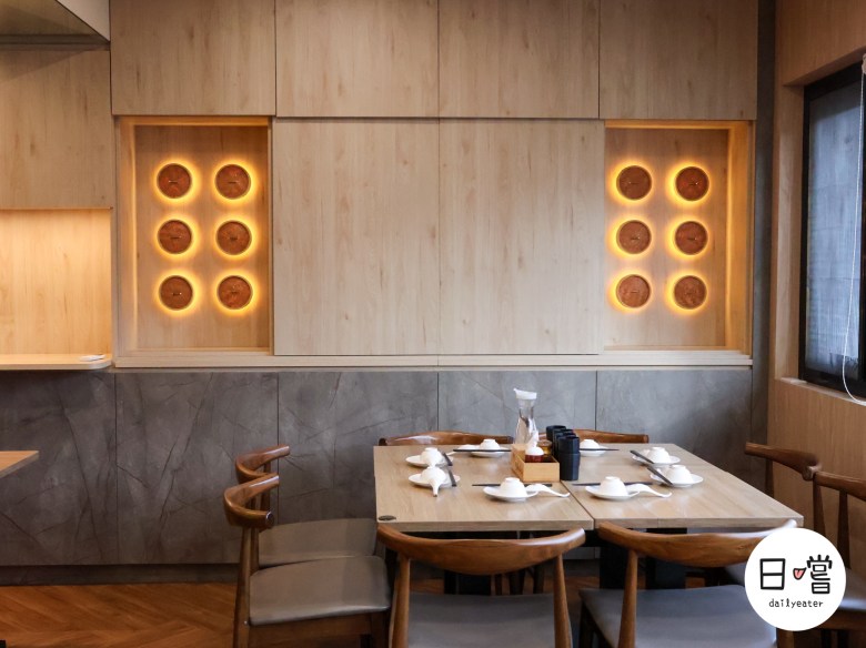 一樓延續木質設計主調,搭配低彩度的柔和色系,給人一種沉穩放鬆的氛圍。座位以雙人與四人桌為主,適合情侶或小型聚餐。最吸睛的是半開放式廚房,可以直接看到師傅們備料、蒸籠起鍋的瞬間,讓料理的香氣和視覺體驗同時被放大。