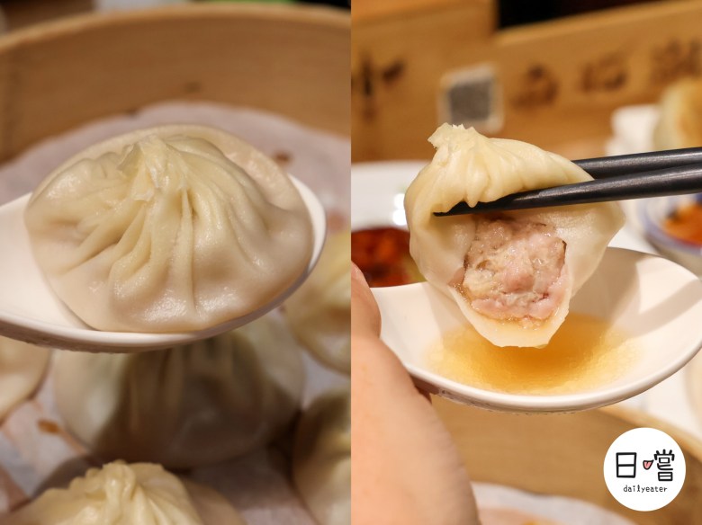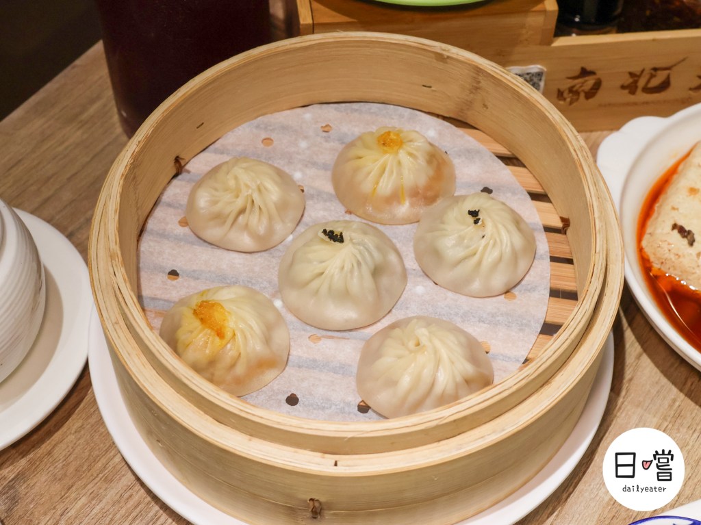 三味小籠湯包一上桌就超吸睛,原味、蟹黃、松露三種口味一次滿足!皮薄輕輕夾起還能看到裡面的滿滿湯汁。