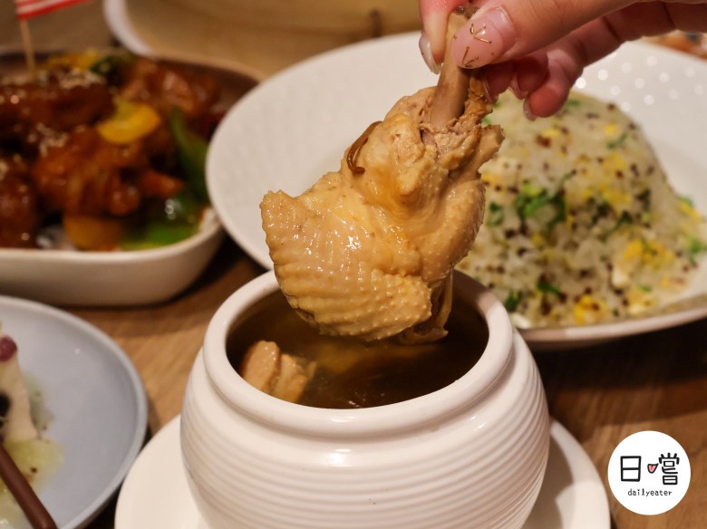 配上熱騰騰的 小籠包,一口咬下滿滿湯汁超療癒。還有滷得入味的小菜拼盤,口感豐富又清爽解膩。套餐裡還附了一碗 黃金豬肚燉雞湯,雞肉燉得軟嫩、湯頭溫潤,不管是夏天還是冬天喝一口瞬間幸福感滿分!最後再來一塊透亮夢幻的甜點,,是完美收尾。