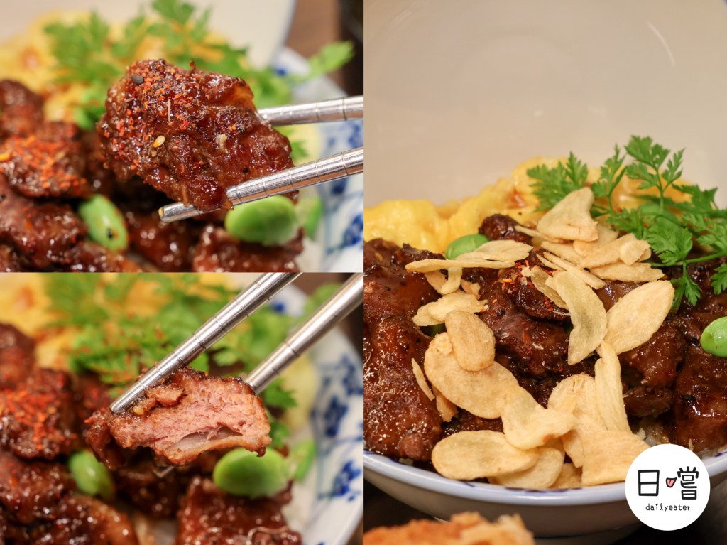 最上面還撒上滿滿酥脆蒜片,不只香氣更濃厚,還多了脆口的驚喜。無論是單吃牛肉、配飯一起入口,還是挖一匙蛋與蒜片混著吃,都讓人欲罷不能。