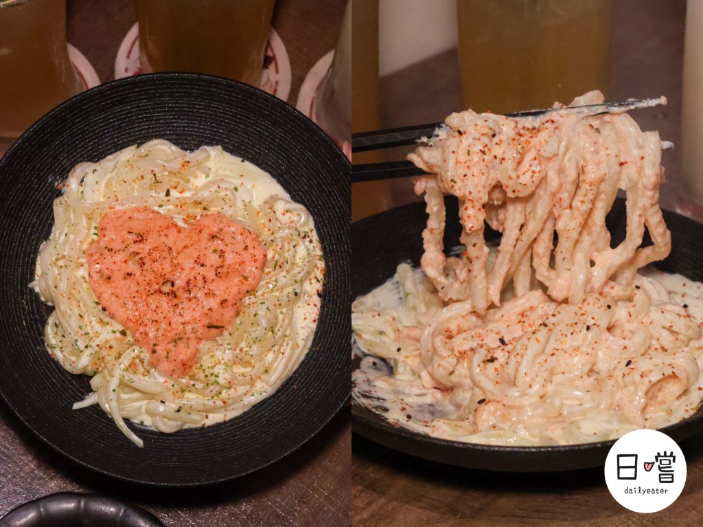 白醬濃郁滑順、鹹香中帶有淡淡奶香,跟明太子完美融合,每一口都能吃到鮮味在嘴裡爆開的層次感。Q彈的烏龍麵裹上醬汁後更加滑順,不僅口感紮實,還帶著明太子的微辣鹹香,吃起來完全不膩口!