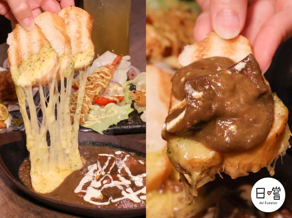 旁邊附上酥脆麵包,可以沾著咖哩和起司一起吃,增添不同口感。咖哩的濃郁、起司的鹹香、麵包的酥脆在口中交融😍