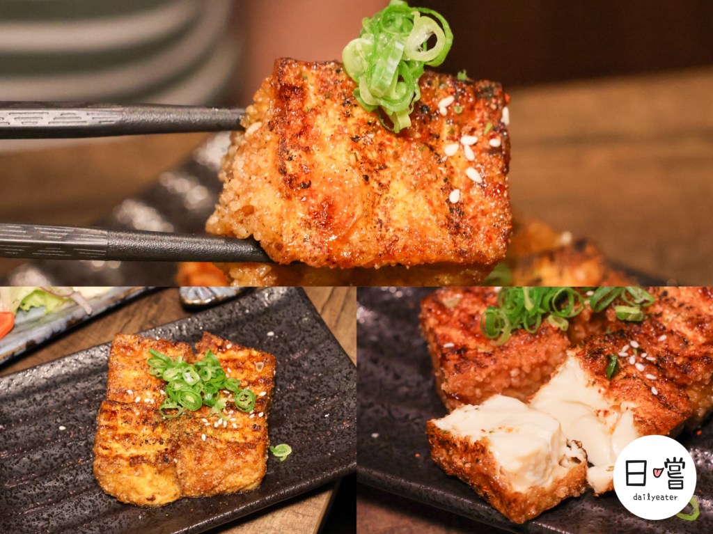豆腐先炸後經過烤後微酥帶香,表面刷上特調醬汁,香氣在熱氣中散開。豆腐內裡依然柔嫩細滑,一口咬下先是甜鹹交織、緊接著豆香在嘴裡散開,搭配蔥花與白芝麻增添香氣層次。