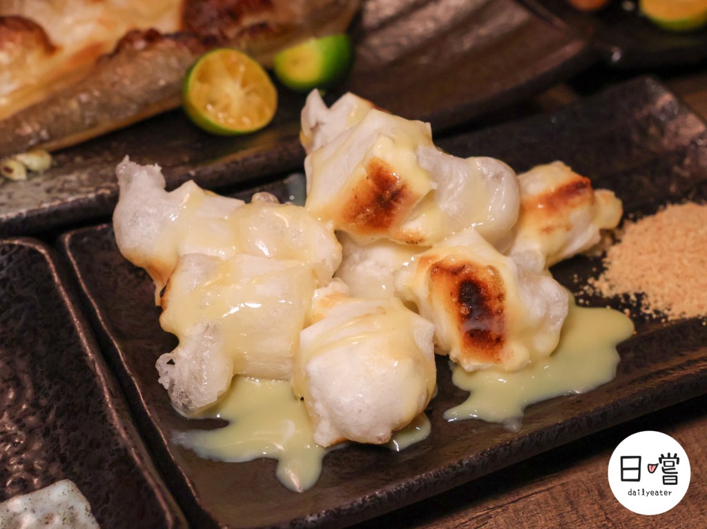 午仔魚一夜干烤得金黃油亮,外皮微酥、魚肉依然保持柔嫩多汁。筷子一夾就能看到細緻的魚肉層層分明,入口鹹香中帶著淡淡海味,越嚼越能感受到油脂的香氣在口中散開。擠上新鮮金桔汁後更添清爽風味,完美中和鹹香,會讓人一口接一口停不下來😍