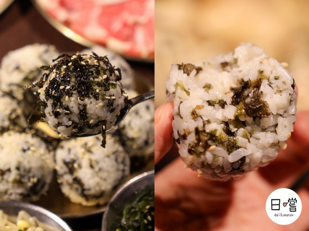 飯糰裡拌入滿滿的海苔與香油,香氣超誘人,每一口都能吃到芝麻的微脆與海苔的鹹香。口感上粒粒分明不黏膩,咬下去軟Q中帶點香氣層次。吃火鍋或燒肉時搭一顆剛剛好,也能中和口味、解膩又滿足。