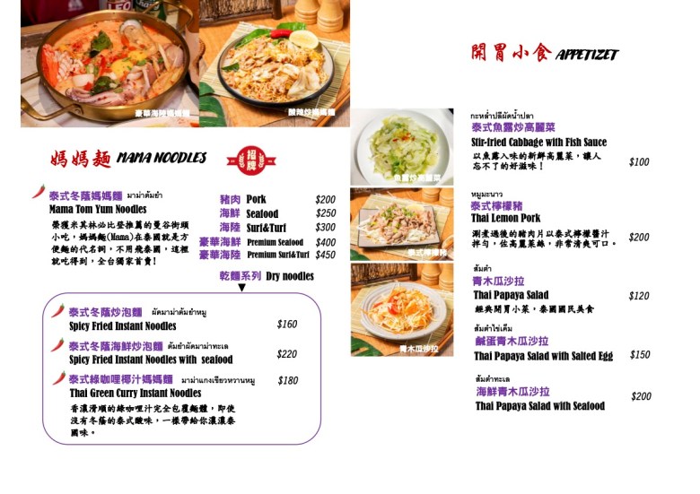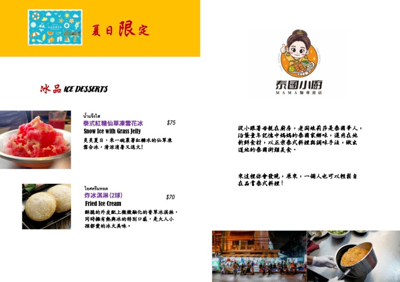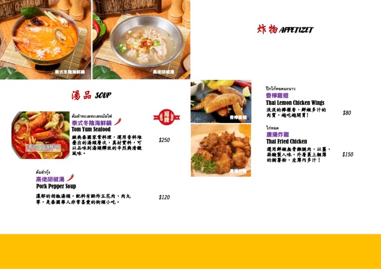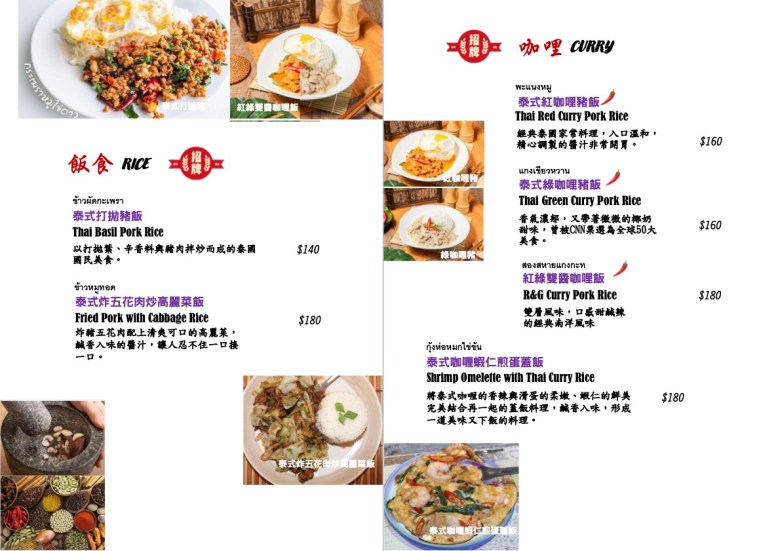 主食類我會比較推他們的咖哩系列跟媽媽麵。咖哩走的是濃郁派,配飯很危險,很容易不小心吃光;媽媽麵就是典型泰國街頭味,湯頭酸辣夠力、海鮮給得實在,是會想再點一次的那種。