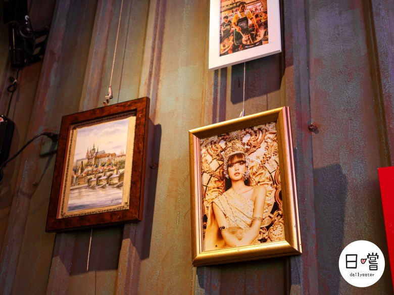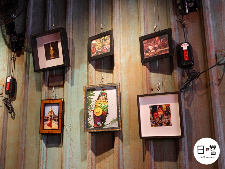 店裡其實蠻多細節可以看,牆上掛滿泰國相關的照片、畫框跟裝飾,從街景、市場、人物到霓虹燈元素都有,整體風格很明確,就是在營造一種泰國街頭感。