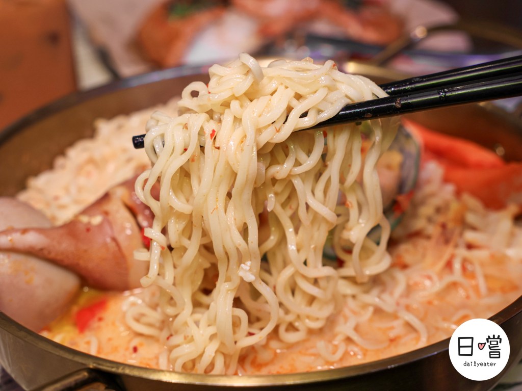 而且它不是清湯型,是偏濃、偏厚的湯感,舀起來會微微掛湯匙。拿來泡媽媽麵真的很強,麵一吸湯,酸辣味會直接卡在嘴裡,如果你本來就愛冬蔭功,這鍋會是會想一直喝的那種。