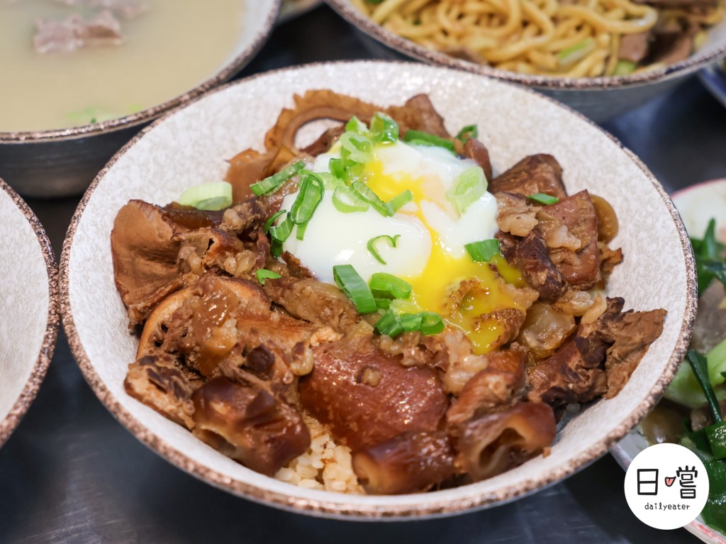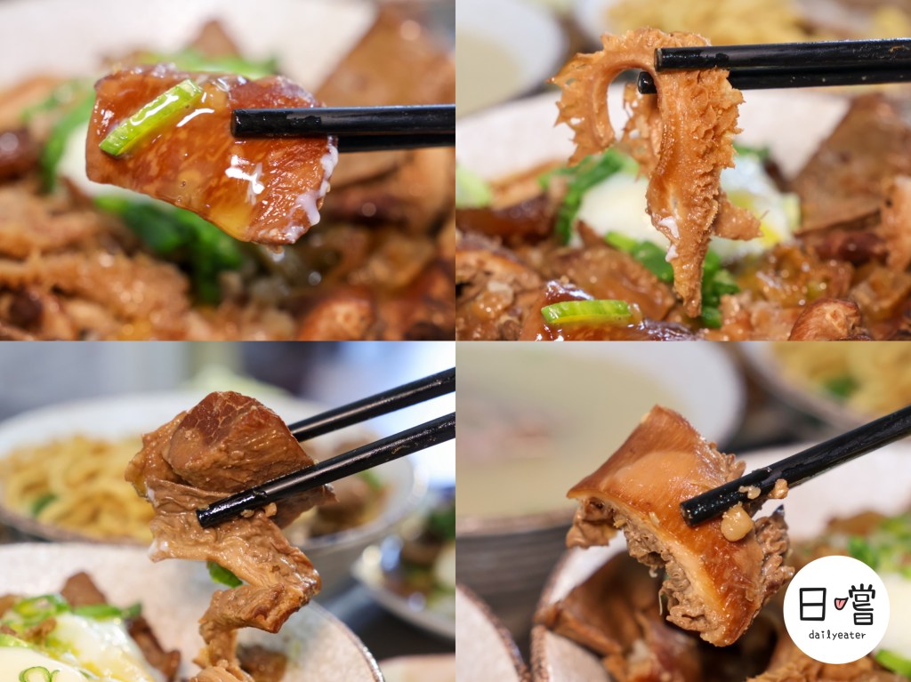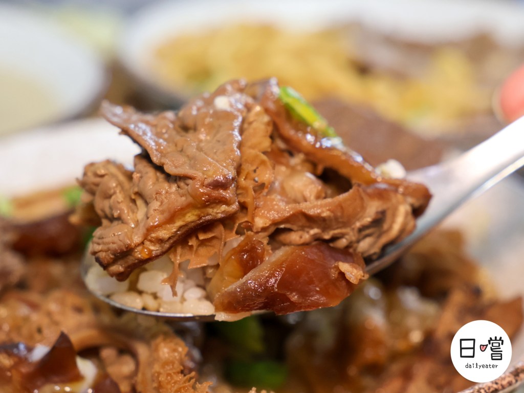 牛肉表面帶著明顯光澤,可以看出有經過滷製或醬燒處理,不同部位呈現出不一樣的紋理與色澤,有的偏瘦、有的帶筋、有的油脂感比較明顯,整碗看起來就像是在呈現「牛肉拼盤放在飯上」的概念,而不是單一口感的牛肉飯。