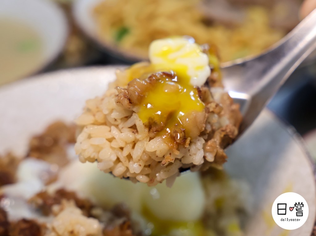 白飯上鋪滿切得細碎的牛肉燥,中間放上一顆完整的溫泉蛋,顏色對比很乾淨,淺色米飯、深色牛肉燥,再加上滑嫩的蛋白,單看外型就會讓人想先拍照再動湯匙。